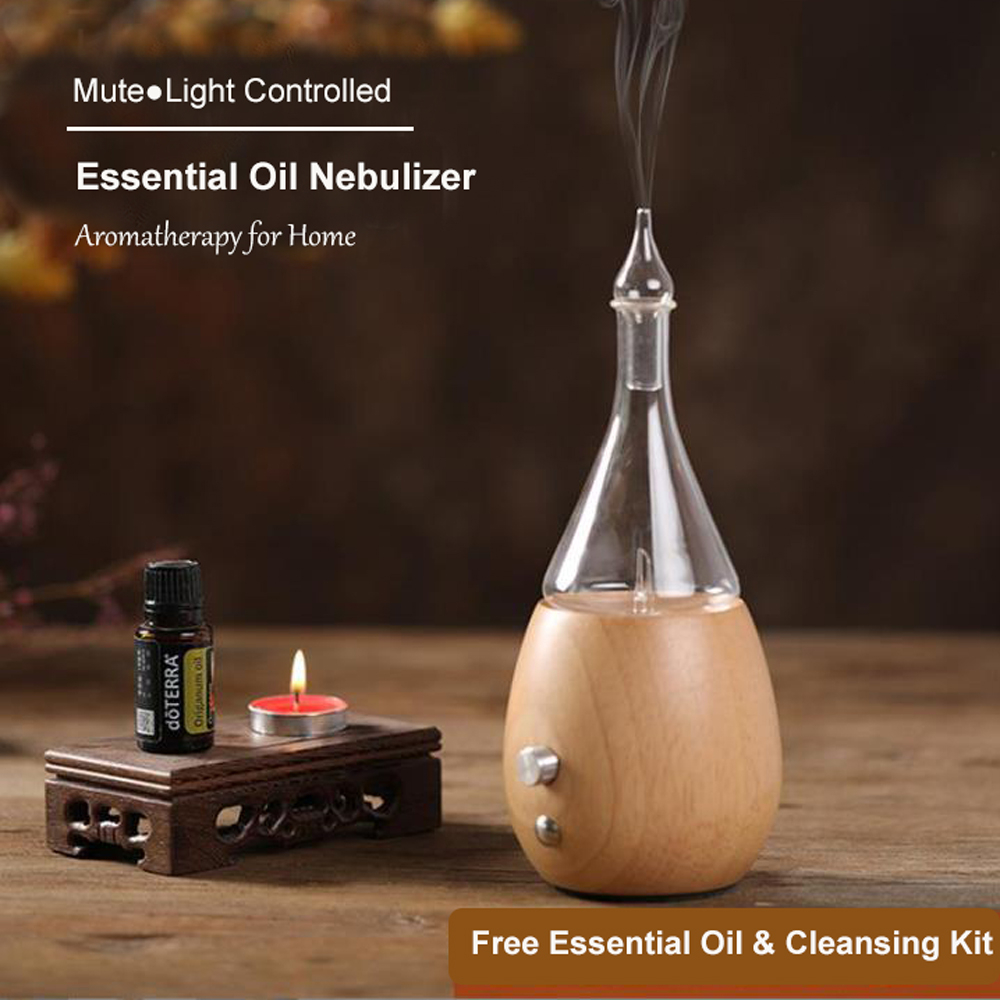 Nebulizing Essential Oil Diffuser for Aromatherapy Light Colored Wood Base and Glass Very well made.