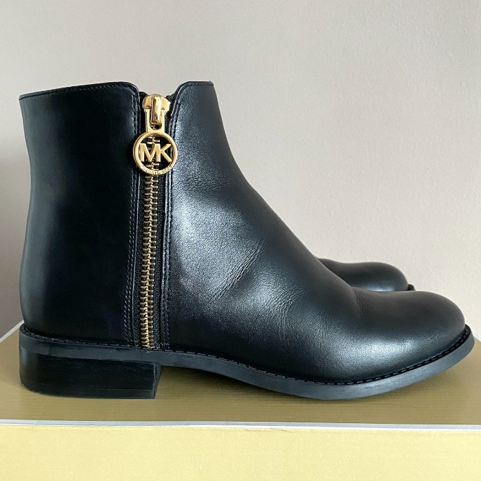 Michael Kors Lainey Flat Bootie Black leather Black leather Very well made.