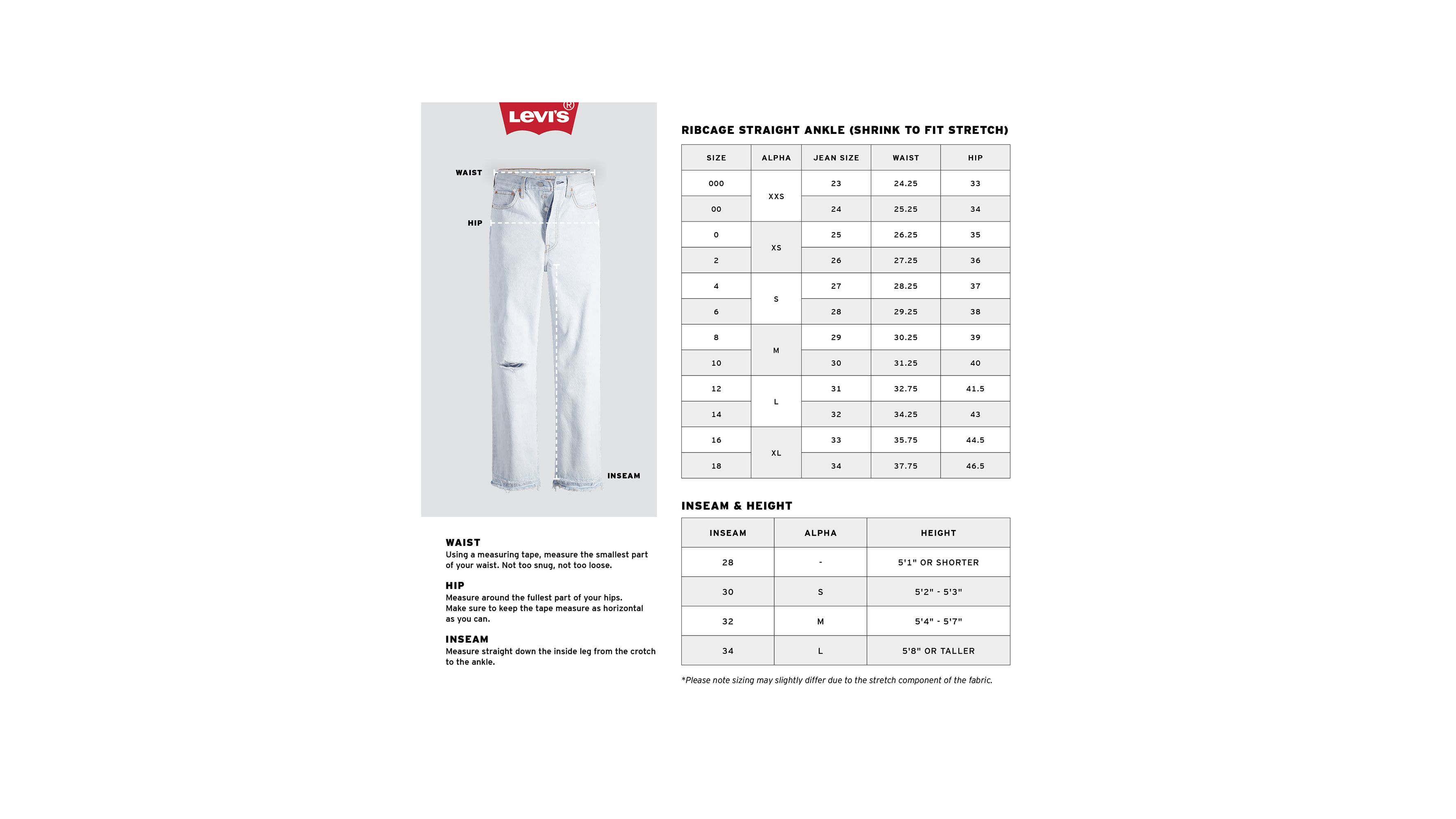 Size chart Levi s Jeans Jackets Clothing Very well made.
