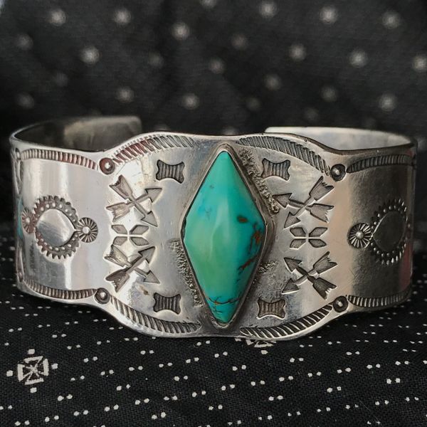 Navajo Fred Harvey Era Bracelet with Green Turquoise Cosmic Norbu Very well made.