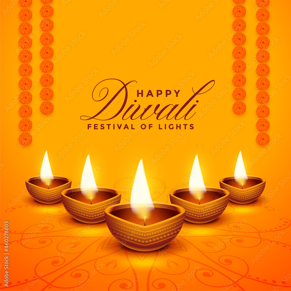happy diwali realistic festival decoration card design Stock Very well made.